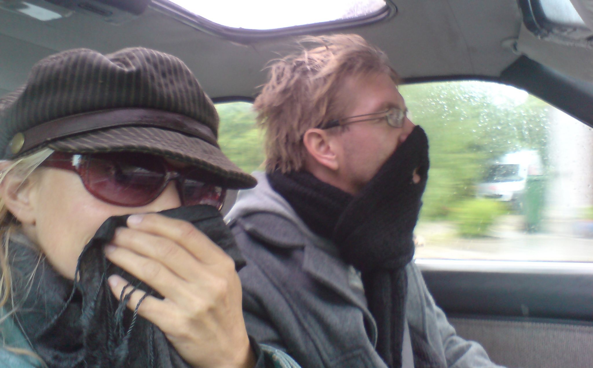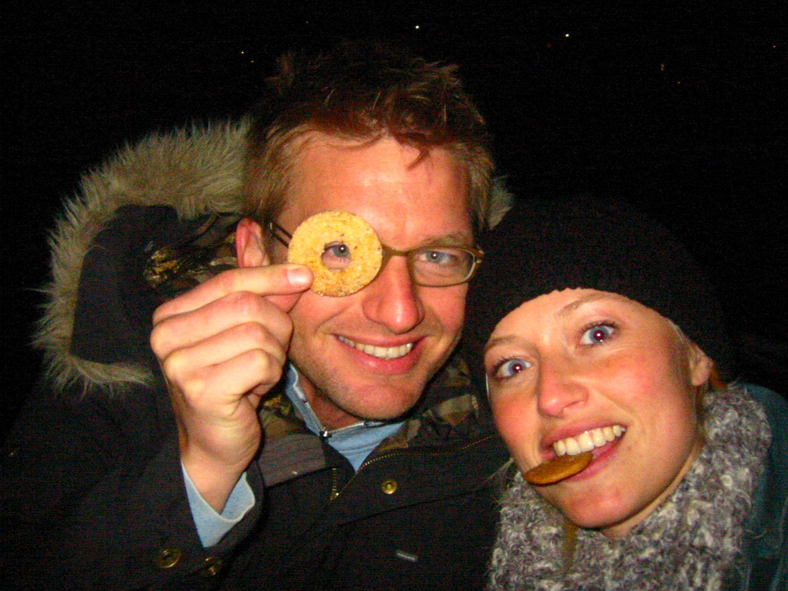Mads’ sister saw our deep despair and gifted us an old rust bucket of a car, a 1985 Toyota Carina. But… we couldn’t afford repairs, so in the picture above you see us driving without a windshield and eating insects at 80 km/h.