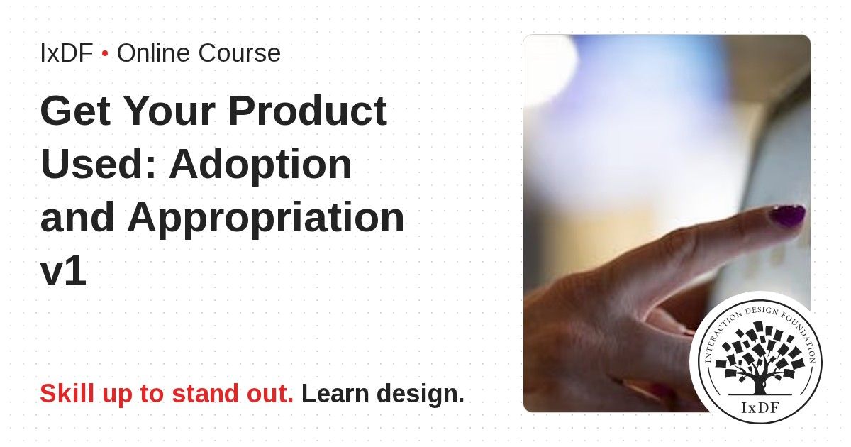 So, what is the way forward? Well, once you’re sure that the user experience and usability of your product work the way you want them to, you’ve got to get your designs adopted by users (i.e., they have to start using them). Ideally, you want them to appropriate your designs, too; you want the users to start using your designs in ways you didn’t intend or foresee. How do we get our designs adopted and appropriated? We design for adoption and appropriation.