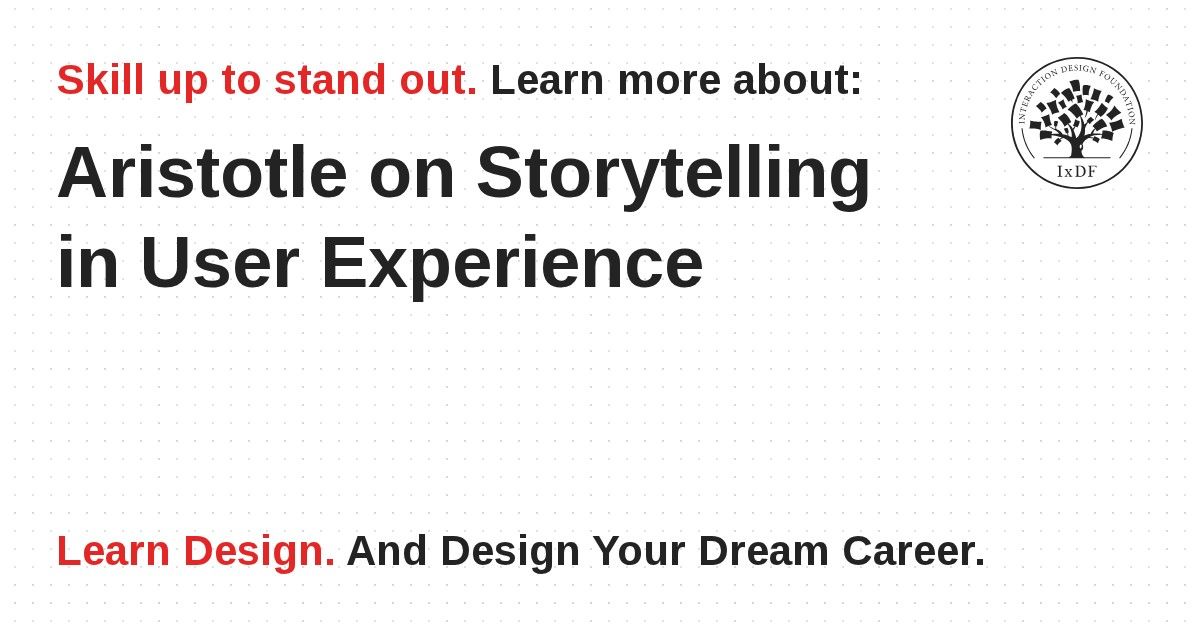 The classical Greek philosopher Aristotle (384-322 b.c.e.) made many groundbreaking discoveries about the way people interact, masterfully breaking down a phenomenon such as public speaking into its constituent parts. Aside from his famous three appeals (logos, pathos, and ethos—the fundaments of any act of persuasion), his observations on the art of storytelling are another great gift to the fund of wisdom we can use in UX design. By focusing on each of these—Aristotle’s seven aspects of storytelling—we’ll be on the right track to building designs that bring our users on board.