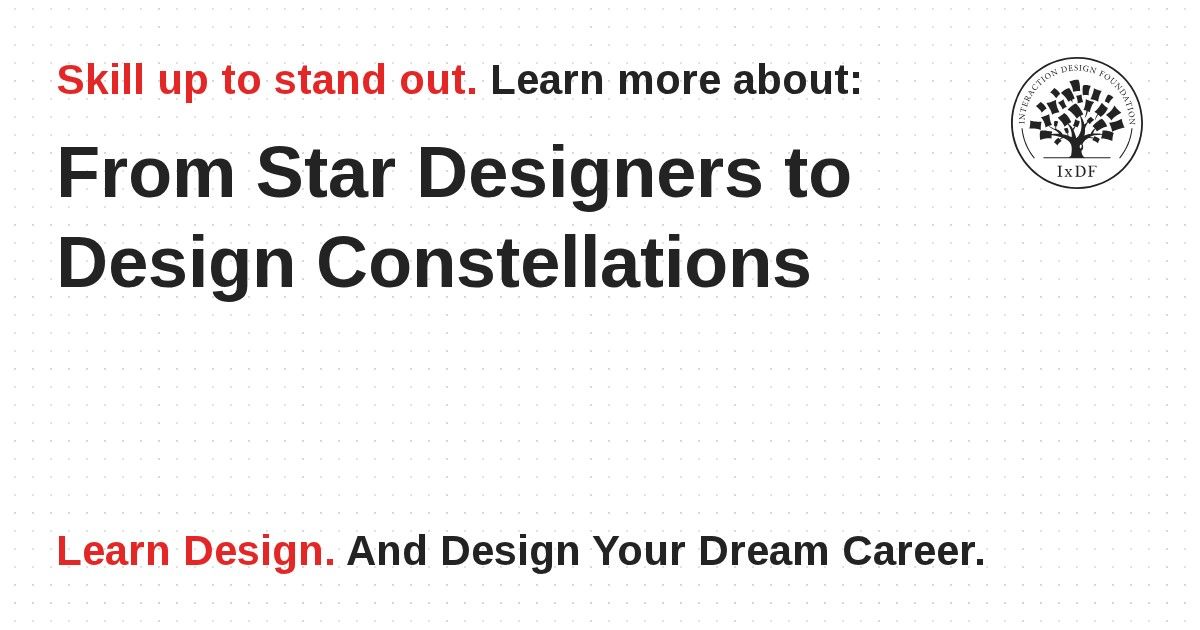 The radical shift from shining like a star to twinkling in a constellation will have long-lasting implications in all realms of design. From design education and career management to business innovation and design management, we should better start anticipating what skills we need to navigate through this new interstellar design space.