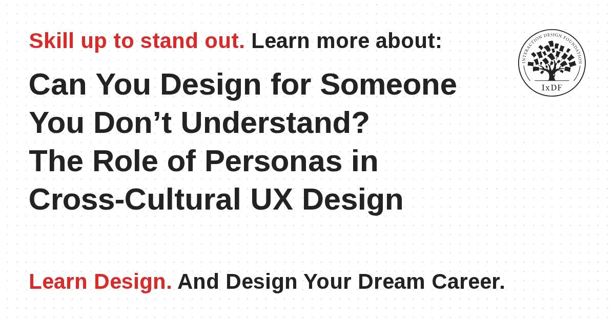 Can you design for someone you don’t understand? The answer is no—not without research and the right tools. Assumptions, biases, and a belief in "universal design" can lead to products, services and experiences that fail to connect with global audiences. However, with cross-cultural research and well-crafted personas, you can design for people you don’t yet understand.