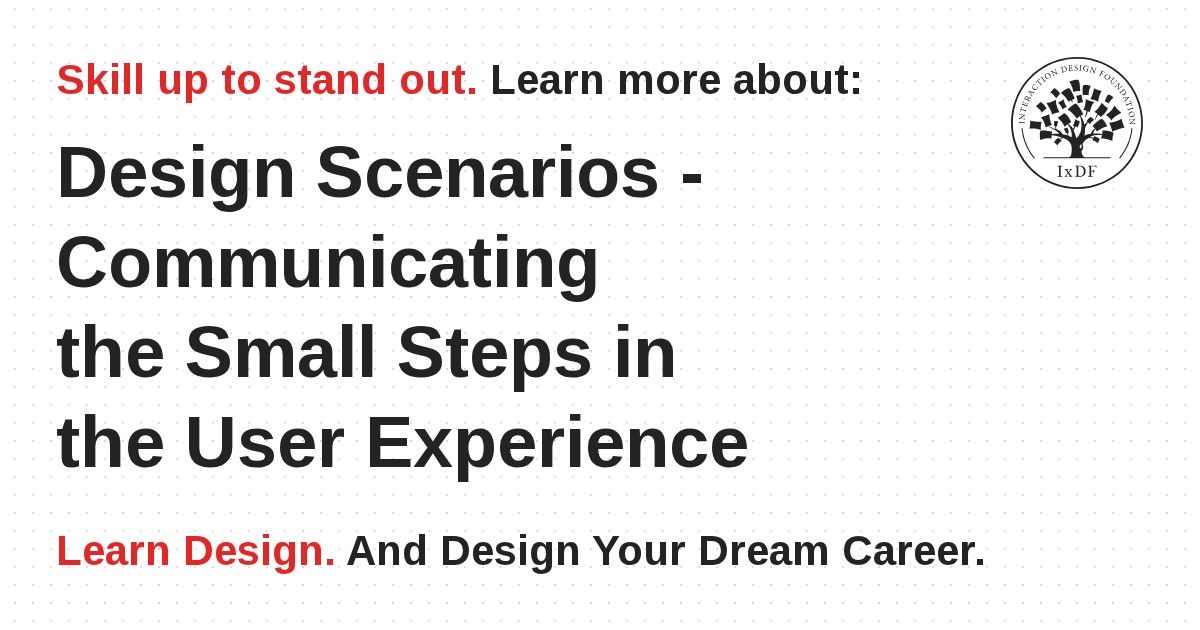 Design scenarios are useful tools for communicating ideas about user actions. Mapping design scenarios also has the added benefit that it helps formalize ideas and to take creative approaches to those ideas. Most importantly of all, it will ensure that your designs are firmly rooted on terra firma and taking a “what our users want/need” approach from the outset. In general, user scenarios are designed to capture the key interactions with a system and not all possible interactions.