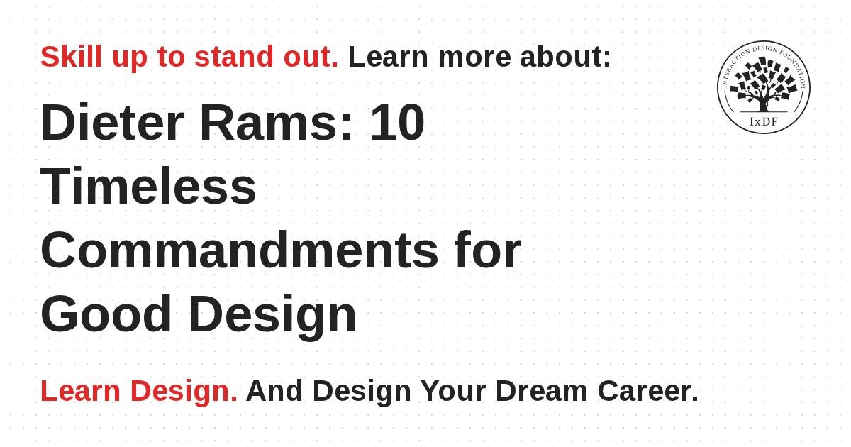 Both consumer products and technology have changed tremendously. Even aesthetics have changed considerably and many of Rams’ designs look old-fashioned for most of us, or trendy and “in” if you’re a fan of ’60s and ’70s designs. Despite all these changes around, the commandments remain valuable guidelines for anyone working in design and not only for industrial designers but also for you, user experience designer!