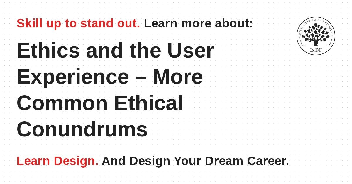 Unfortunately, ethical numbing tends to take place in workplaces that are ethically devoid. Where commercial concerns always dominate the agenda and where every unethical action can somehow be justified by those with authority. There’s not a lot the UX designer can do about this ethical conundrum but we’d recommend that they begin by looking for another job with a stronger ethical environment.
