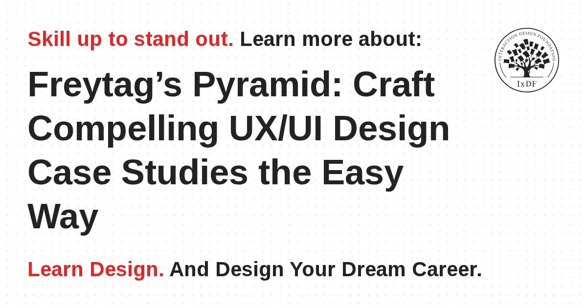Stand-out case studies for your portfolio are simpler to write than you might think. The not-so-secret “secret sauce” is storytelling—something humans have been doing for a long time. As a result, there is a multitude of frameworks, guidelines, and structures that UX/UI designers can take advantage of in their case studies. One of the simplest yet most effective structures is German playwright Gustav Freytag’s Pyramid. Use this structure and transform your UX/UI design case studies into absorbing narratives that hiring managers love to read.