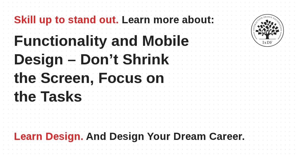 Designing for mobile devices is not the same as designing for laptops or desktops. It's about creating a unique user experience that focuses on what matters to mobile users. To achieve this, it's important to focus on the tasks that users want to accomplish and ensure they can be executed efficiently.
