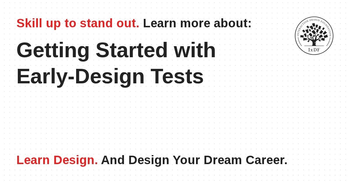 Early-Design Testing is a great way to minimize extra work later in the process.Let’s get started on this exciting topic! In the video, William Hudson introduces early-design testing generally and the two methods we’re going to cover in detail: tree testing and first-click testing:[[video:916]]Refer