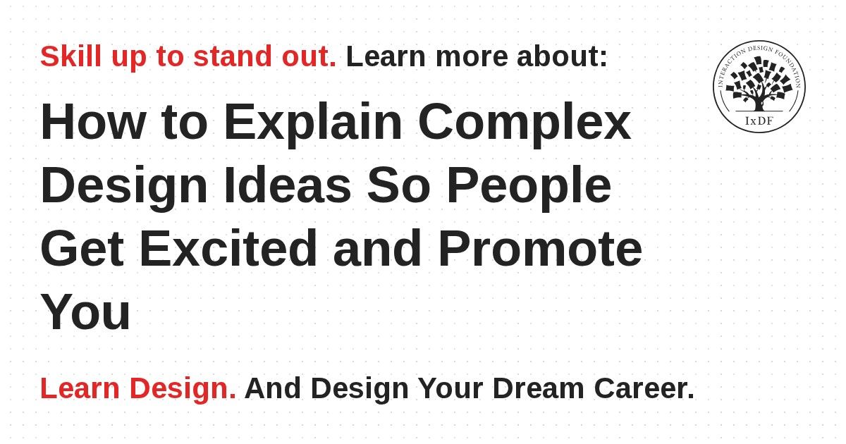 You are an expert! If you want to move up in a company or convince people to support your ideas, you need to communicate your expertise and excitement clearly. Sounds easy, right? The problem is that the more expertise you have, the harder it can be to communicate. In this video, Don Norman shares his ideas for avoiding this problem. One is to start with practical examples that your audience can easily understand, then talk about abstractions that tie those examples together. So, before you talk about the history of art, show some paintings, or start your next talk on usability with a live demo of an app with great usability, or a usability fail! You should also convey your excitement. If you are motivated by the topic, then the audience will be too—not just to listen but also to look into it on their own.