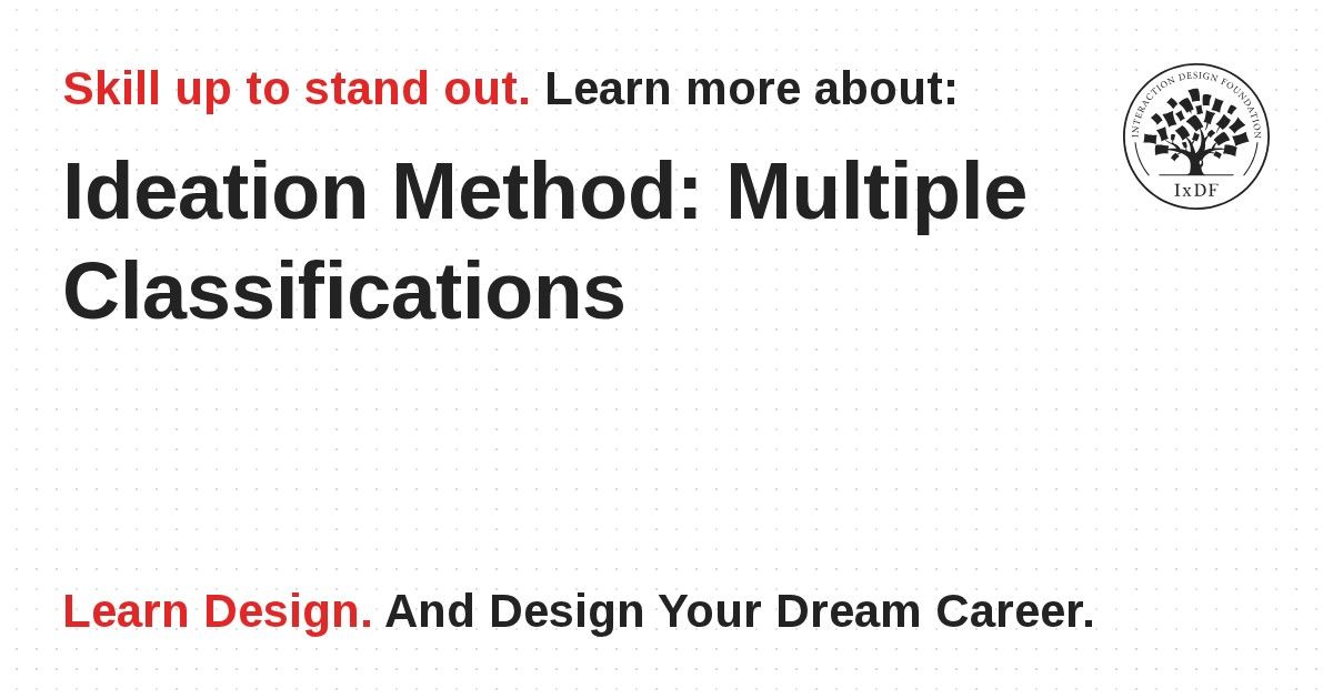 As a designer, it’s crucial that you understand your design space. The best way to discover where the interesting opportunities for new products exist is that you develop a good understanding of the design space. Multiple classifications is a great method for mapping your design space, and you can use it in a couple of different, but related, ways. In this video, you’ll learn about four major ways in which multiple classifications can give you additional power to explore, analyze and find inspiration for problems and ultimately synthesize novel solutions.