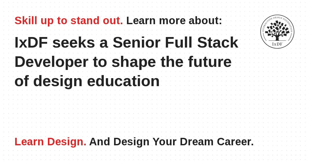 The Interaction Design Foundation is the world's most prestigious community and course platform for User Experience designers. We've spent the last 14 years building our community and course platform from scratch – based on a brilliant technology stack. And now we need you to help us build pure awesomeness in version 7, 8, 9, etc! We would love to work with you if you're a senior full stack developer with sublime programming skills acquired from 5+ years of experience.