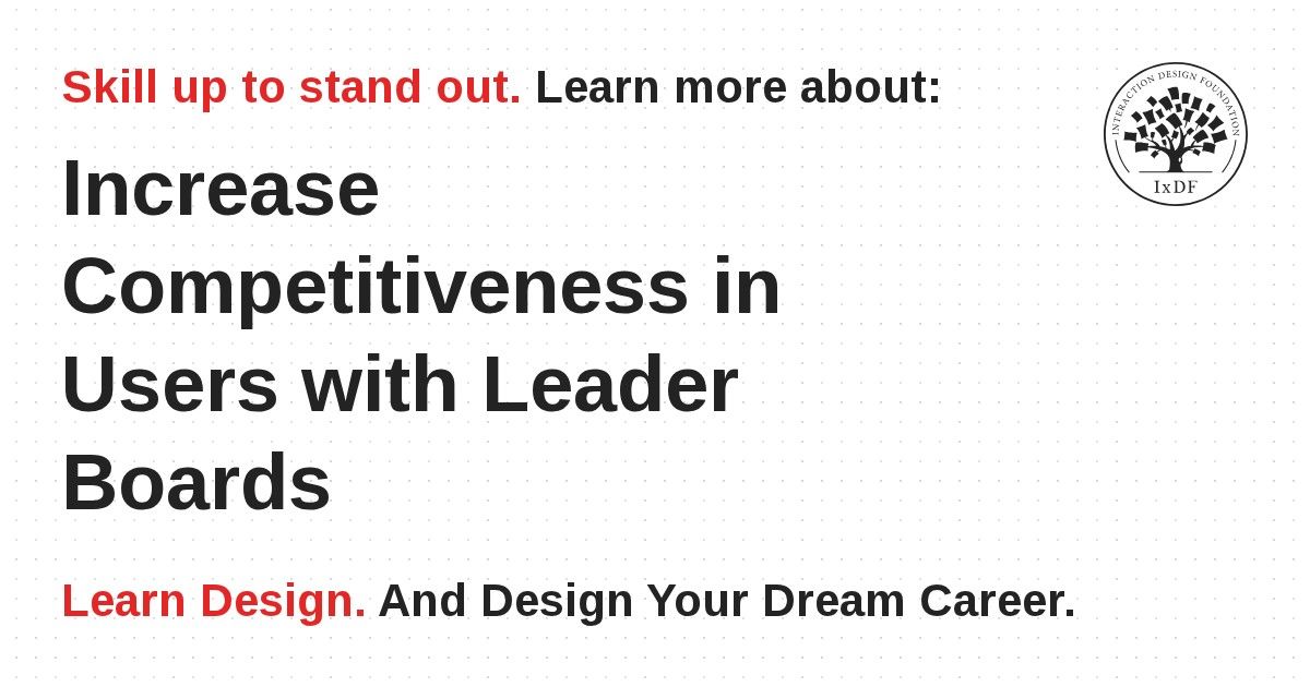 We use leader boards in the Interaction Design Foundation’s online courses, to encourage course participants to compare themselves to their national and global group of peers.
