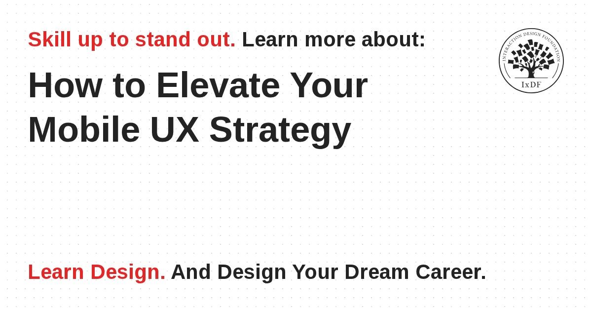 Mobile UX Strategy: How to Build Successful Products is a 4-week journey into the very heart of mobile UX design. Throughout this course, you’ll gain skills to distinguish your mobile UX strategy and make smart design decisions—ones that can lead to big wins for your digital product. You’ll engage with topics such as user research, interface evaluation, and the nuances of mobile user behavior.