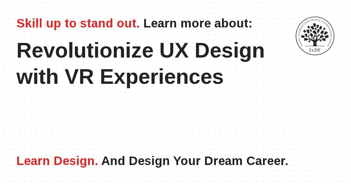 The IxDF UX Design for Virtual Reality course is going to provide deeper insights into what we discussed in this piece, and it gives you the skills to design amazing VR experiences. You'll learn how VR works, how to adapt UX principles for this unique medium, and how to design for comfort and immersion. Plus, you'll master user research for VR, create powerful narratives, and get to understand how to make VR experiences accessible to everyone.