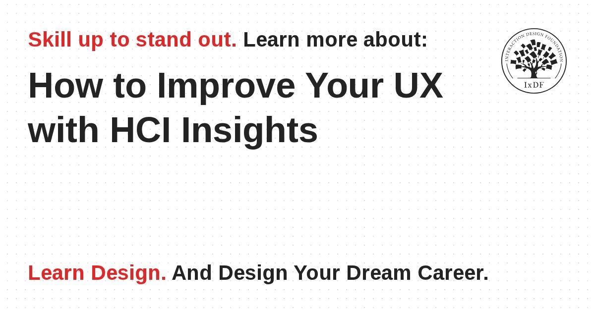 The IxDF Human-Computer Interaction: The Foundations of UX Design Course is a 5-week course that will help you further understand and build upon the topics we discussed. This course covers the principles of human-computer interaction (HCI) and teaches you how to create intuitive user experiences that delight users and enhance customer loyalty and brand value.
