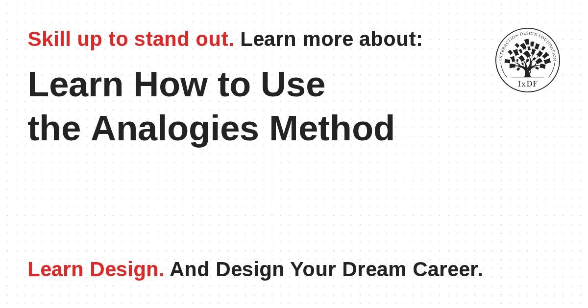 The ideation technique of using analogies goes by many names. Essentially, it all boils down to exploring unrelated concepts for an insight, which you can apply to your own problem's context. These insights on how principles or characteristics exist within one context may help inform how to reshape these principles and solutions within a different context. Purposely stoking ideation teams to dig for analogies gets them thinking about the attributes of the elements they are working on in a different way. It will help the team seek inspiration in problem solving, reconfigure the design problem and come up with unconventional solutions.