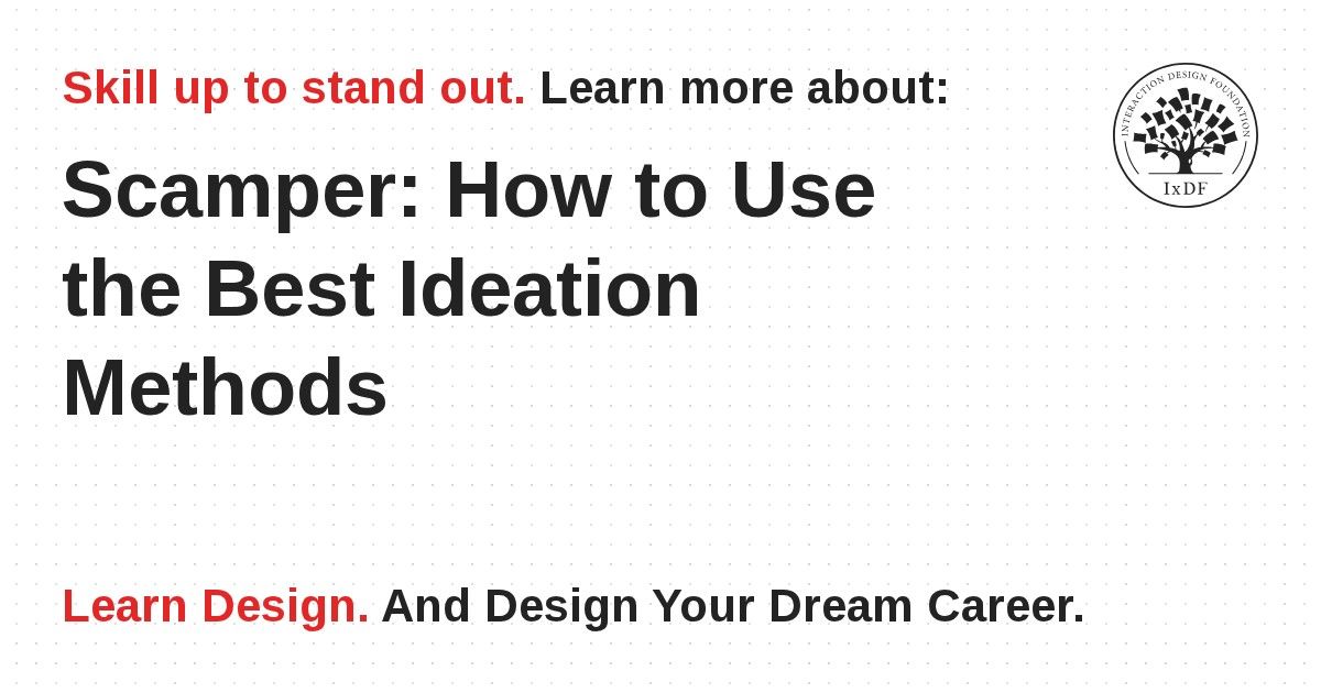 The SCAMPER method helps you generate ideas for new products and services by encouraging you to ask seven different types of questions, which will help you understand how you can innovate and improve existing products, services, problems and ideas. Here, you’ll learn how to use the method. SCAMPER is surprisingly easy to start using and very efficient in innovation and ideations sessions.