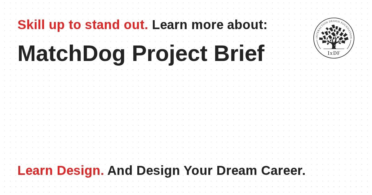 Welcome to the project brief for MatchDog. In this brief, you’ll get all the information you need to start on the Build Your Portfolio exercises hosted here on the Interaction Design Foundation website.