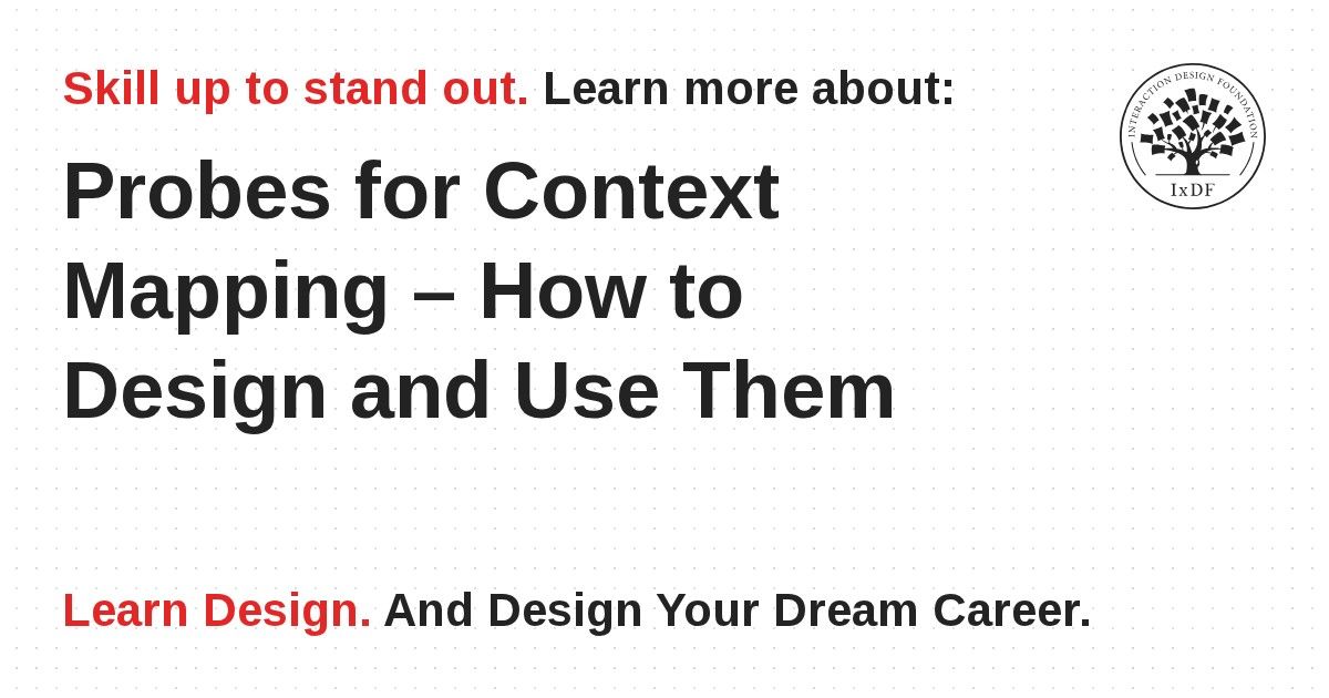 Whether you are designing a mobile app, a professional online platform or an interactive museum exhibition, it is essential to understand users and the context in which they will use your design. Traditional methods such as interviews and observations will help you to touch the surface of their lives. A deeper understanding of what your users feel and dream comes from generative techniques such as context mapping. To use this technique effectively, you need to design the probes kit with care. Learn about the three key points you should pay attention to when preparing probes for context mapping so as to take your designs to the next level.