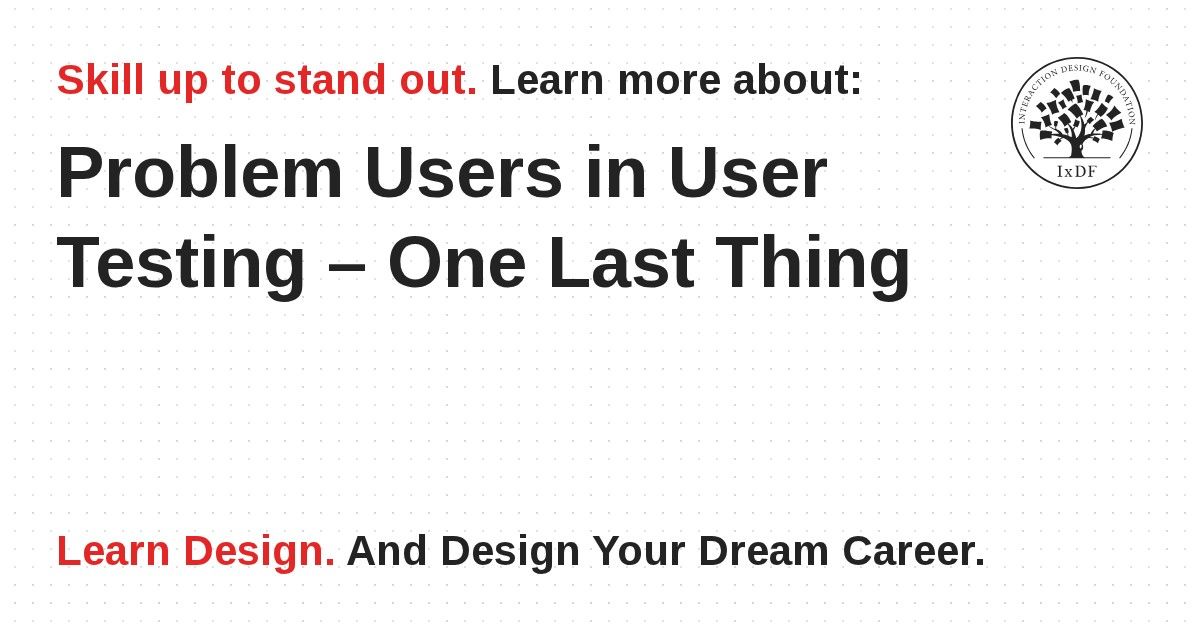 This is the last part of our dealing with problem users in user research and user testing. We’ve seen 6 types of problem user and how we can best handle them during our work. If you missed these parts of the series, we’ve saved them all under the UX Daily tab on our website so you can catch up.
