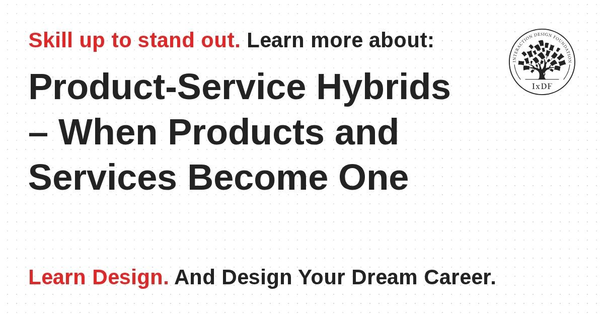 Product-service hybrids are not new; car dealers, for example, have for years tied the purchase of a new car to servicing, repair, MOTs etc. where possible. However, in the digital age they have become increasingly more common. They allow the opportunity to create more profits and increased customer loyalty whilst supplying increased customer value. UX designers will find that they increasingly become involved with not just product design but also service design and marrying the two to provide the best possible user and customer experiences.