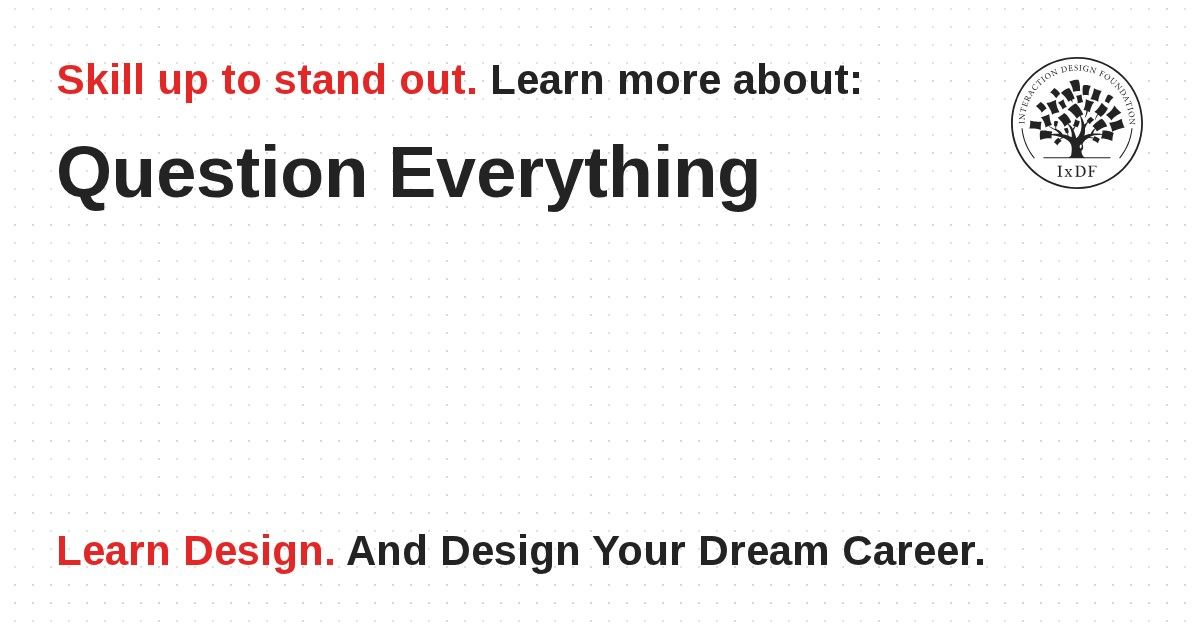 Most of what we can see at the first glance about a problem is only what’s on the surface. In order to create solutions that truly impact our users, however, we need to dig deep into the root of the problem, and the drivers, needs, and motivations of our users. In other words, we should question everything. We should gather information — both quantitative and qualitative — and use what we have learnt to inform our problem-solving process. Lastly, the Five Whys method is a simple but extremely useful way to get to the root of a problem or issue.