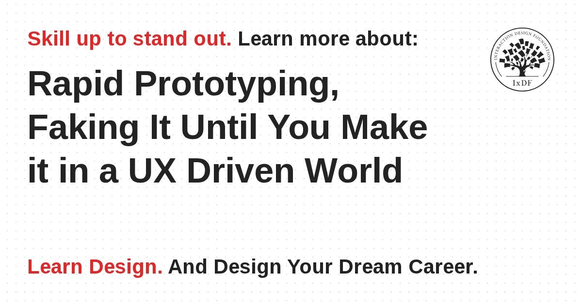 The idea of “faking it, until you make it” is not new but it has a unique UX twist. The ability to develop and test prototypes at rapid rates of iteration lets you “fake” new products, get user feedback and make improvements without ever “making the product” until you have things just right. This can be a very valuable way of making a small budget go a long way.