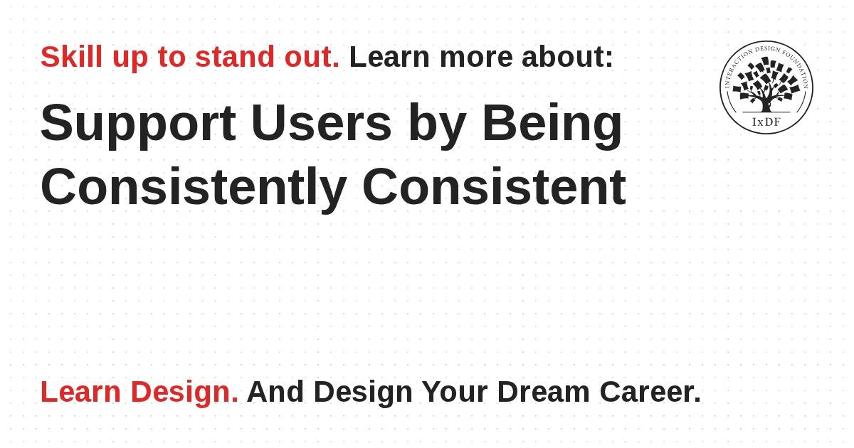 (For those readers looking to learn more about the important design considerations, like consistency, you might be interested in our course User Experience: The Beginners Guide)