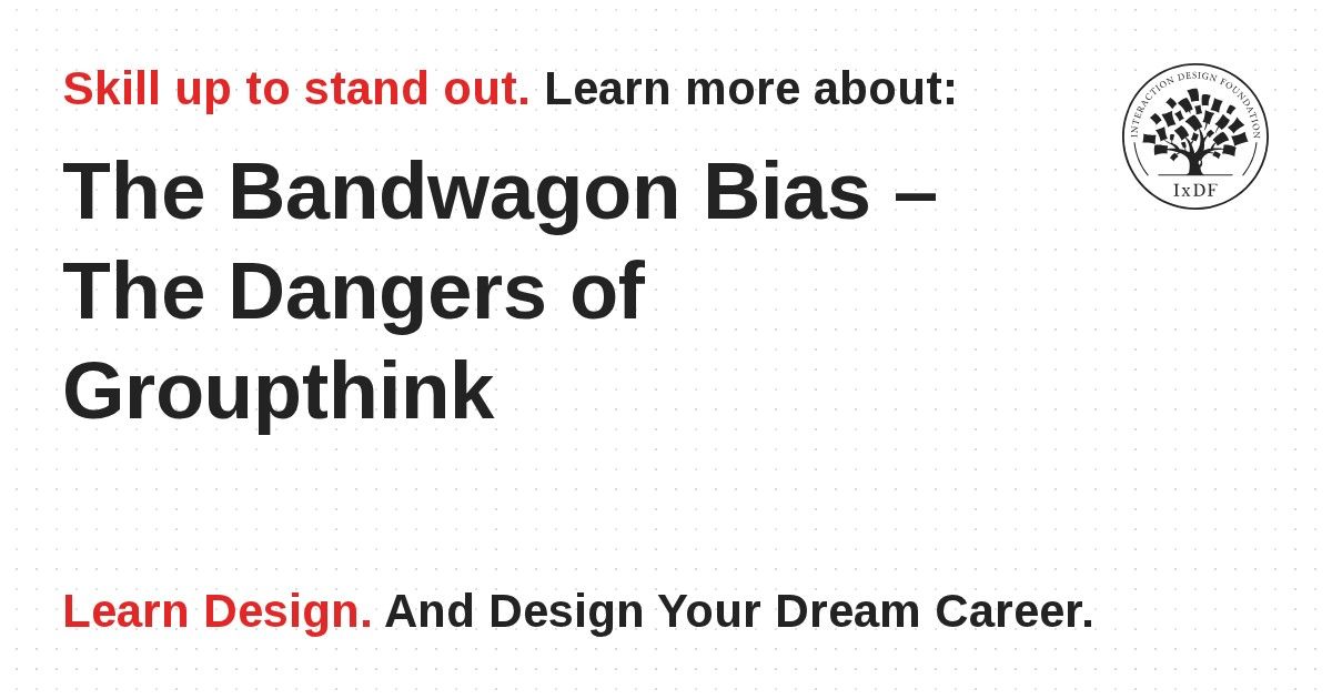 Groupthink is dangerous to our objectivity. It prevents us from thinking for ourselves and making the best decisions. Designers need to be cautious about falling into the bandwagon bias trap but also be aware of how it can be exploited in their designs to improve user experiences and get users to make the decisions the designer wants them to make.