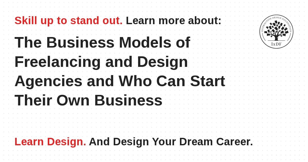 When you choose to work as freelancer or create a design agency, you will conduct business with other businesses (B2B). It’s a very specific business model in which the final product is you and your work. We’ll use the term “business owners” for both freelancers and owners of design agencies.