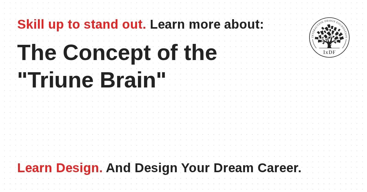Paul MacLean introduced the concept of a triune brain in the 1960s. This model of brain structure and function is based on three specific regions of the human brain: the 1) basal ganglia, 2) the limbic system, and 3) the neocortex. Each of these structures is thought to be responsible for a specific group of mental activities: 1) the fight-or-flight survival response and other primal activities, 2) emotions, and 3) rational thinking. MacLean suggested that these structures developed in this order through evolution. However, while the triune brain model provides us with a neat way of looking at the relationship between structure and function in the human brain, evidence has shown various regions are involved in the three groups of activities outlined above. Therefore, there is no such neat division; instead, primal, emotional and rational mental activities are the product of neural activity in more than one of the three regions addressed in MacLean's model, and their collective energy creates human experience. Nevertheless, MacLean's model provides a clear view of mental activity, which can be beneficial when addressing the needs of users in our design projects.