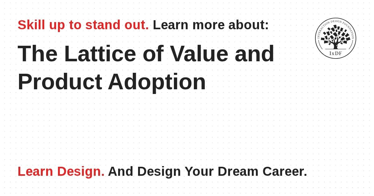 A lattice of value is created when different user groups derive benefits from other user groups using a product. Designers that can create a lattice of value within their product can encourage adoption by different groups of users. The lattice of value can also act as defense of a product when a new product comes to market – it not only needs to offer more value than the existing product but also more value than the existing lattice of value.