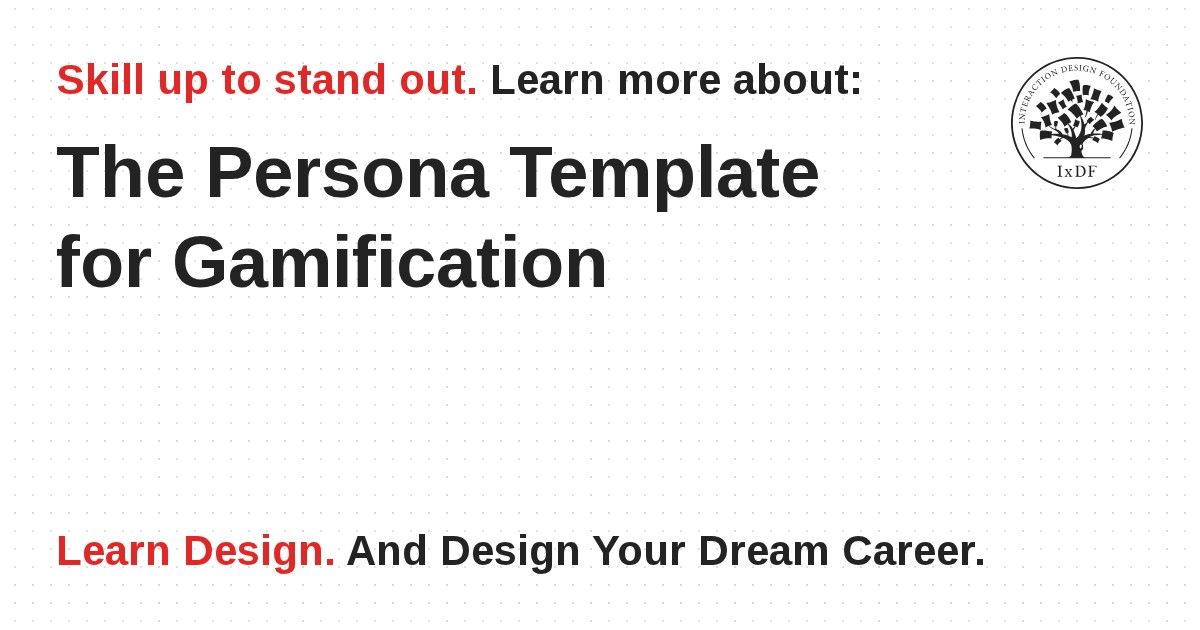For any gamification project, you’ll need to do research on players in order to determine what they will require from the gamified system. The culmination of this research is the development of a player persona; this is similar to a user persona (which most UX researchers will be intimately familiar with), but it also examines some gamification-specific elements which would not otherwise exist in a standard user persona. Let’s take a look at that: