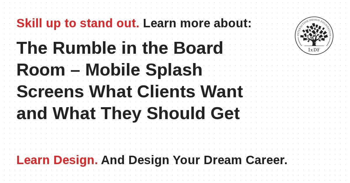 First impressions count. So how do you make a good impression on the first time user of a mobile application? Through a mobile splash screen. Unfortunately, there are often conflicts between a client’s wants for the splash screen and best practices. If you can learn to manage these conflicts – you can create better mobile user experiences for end users.