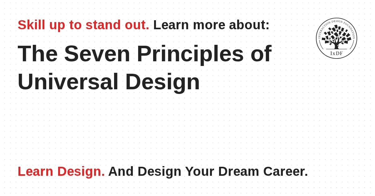 The principle of “Design for All” is one that begins with the Seven Principles of Universal Design. These were founded at North Carolina State University back in 1997 by a team of design specialists across multiple disciplines which was headed by Ronald Mace. The Seven Principles help designers evaluate the effectiveness of their designs to be used by as many people as possible.