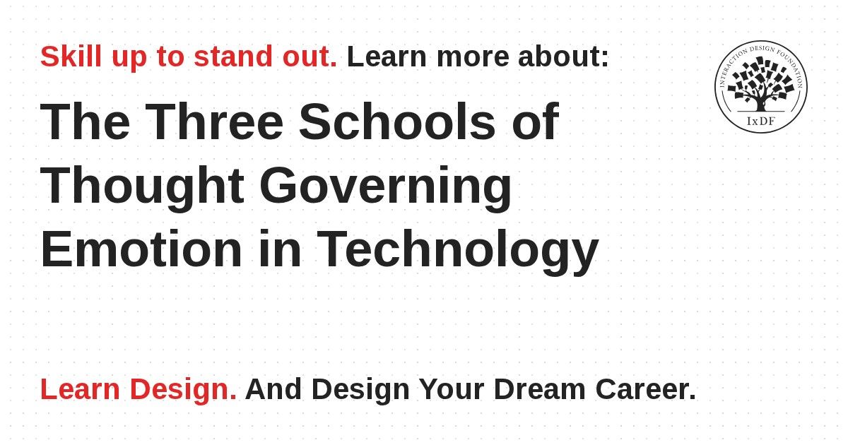 Human Computer Interaction is a surprisingly deep field of research. One of the areas that HCI tries to touch on is the interaction between our emotions and technology. There are three academic schools of thought that dictate how people involved in UI/HCI approach emotions and technology.