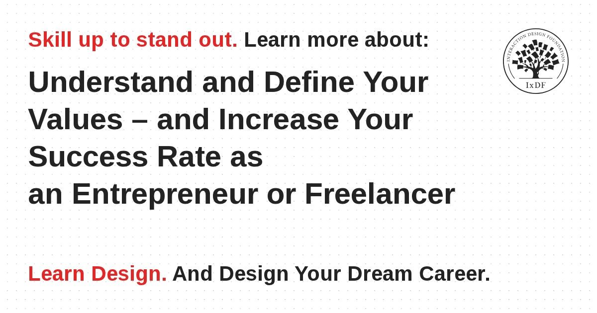 Our personal values can often be a little hard to define. Why?—because our real values and the values that we aspire to sometimes conflict. An honest examination of our values, however, is vital to succeed as an entrepreneur or freelancer. That’s because when we work in harmony with our values, we’re more likely to enjoy and appreciate what we do. Moreover, understanding our real values can help us reflect on our business ideas and help us change and improve our business ideas until they meet our values. This in turn ensures that we bring the best value to our clients.