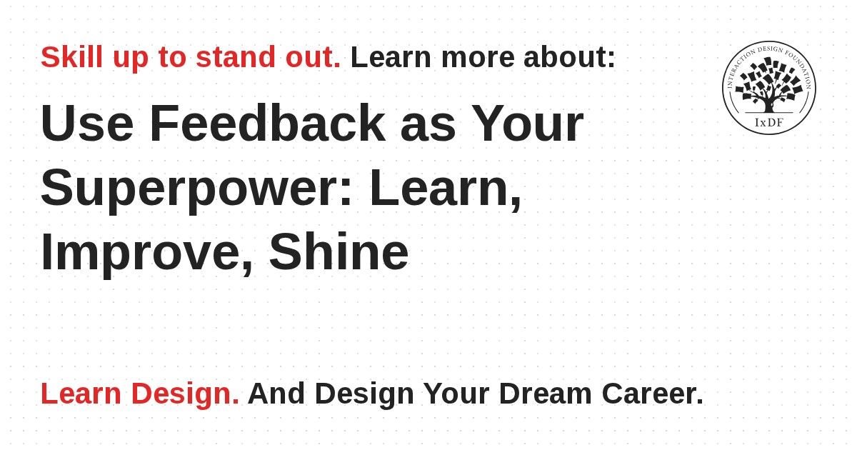 You don’t have to agree with every critique, but you do need to handle it well. That means noticing your emotional response without letting it get in the way. Separate your work from your worth. Ask better questions. Reframe vague or harsh comments into something actionable. When you do this consistently, people will respect your work and you. Because feedback is about growth. And when you know how to use feedback well, you’ll become a better designer, more confident presenter and trusted collaborator people want to work with.