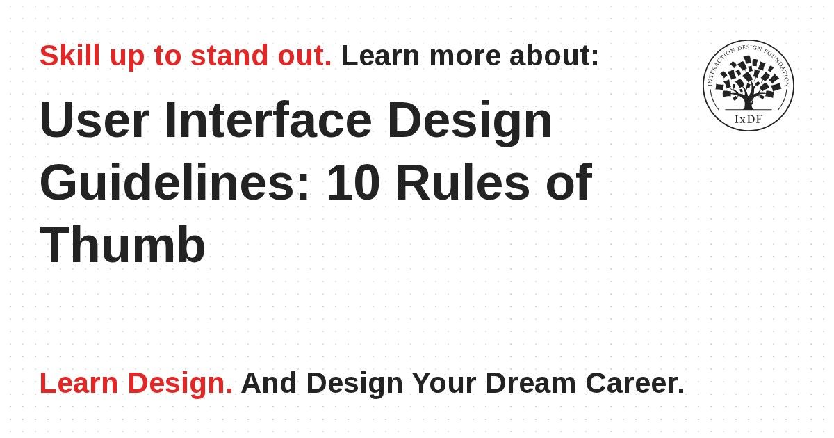 Learn to design with your user’s needs and expectations in mind by applying Jakob Nielsen and Rolf Molich’s Ten User Interface Guidelines. These heuristics have been reflected in many of the products designed by some of the most successful companies in the world such as Apple, Google, and Adobe. Further evidence of how their design teams incorporate these rules into their design process is reflected in the user interface guidelines published and shared by these companies. This article will teach you how to follow the ten rules of thumb in your design work so you can further improve the usability, utility, and desirability of your designs.
