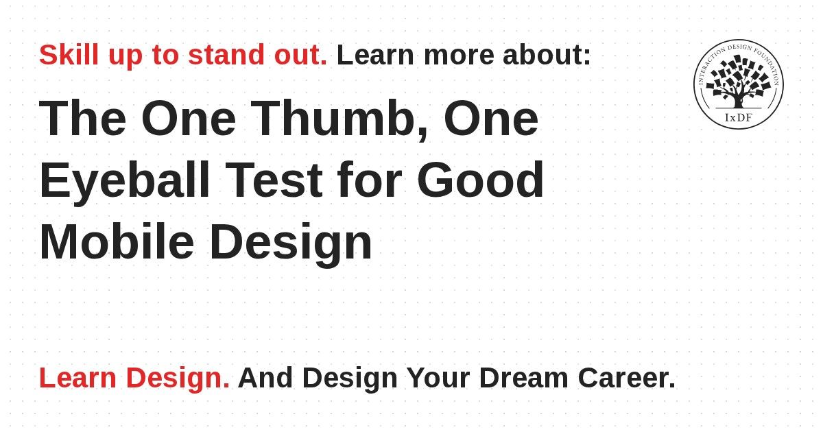 Users face a variety of different situations throughout the course of the day, and to deliver a high-quality user experience, designers need to optimize the interaction with their products to enable the highest chances of user acceptance. The one thumb, one eyeball test is a simple measure to see if the design delivers this simplicity of interaction.