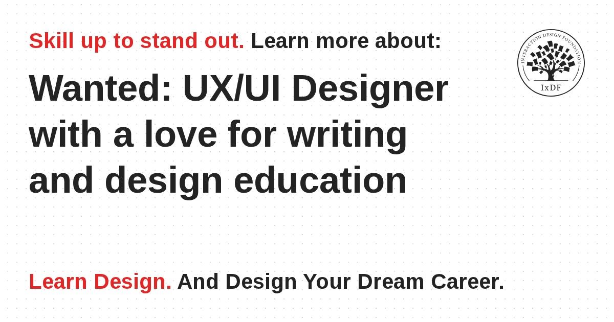 The team behind the Interaction Design Foundation is looking for a highly qualified UX / UI Designer who loves to write and wants to help us create outstanding educational materials. This is a full-time or part-time position. It's a paid position and you can work remotely from wherever you desire.