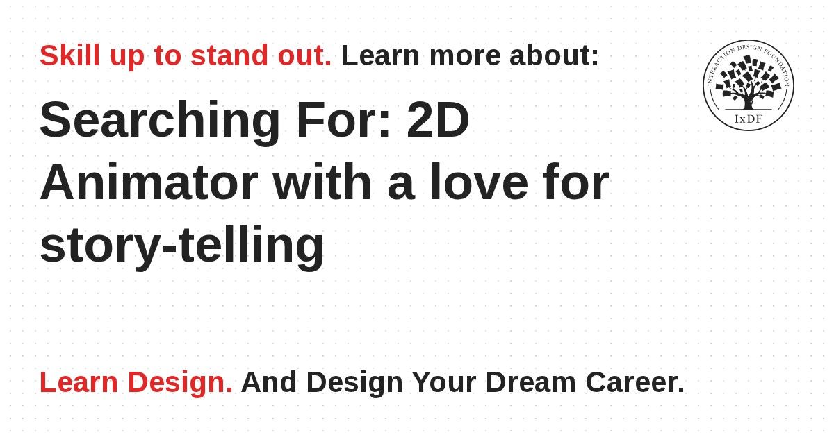 Please send an application to the editor-in-chief and co-founder, Rikke Friis Dam, at rikke.friis.dam@interaction-design.org with the subject line “2D animator for IxDF explainer video ”.
