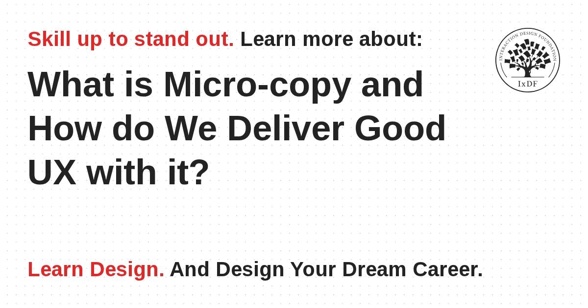 It’s been shown in studies that most of skim read real content. Yet, when we want to know what we have to do – we need clear instructions. That’s what micro-copy does for us; it provides those just-in-time clear instructions.