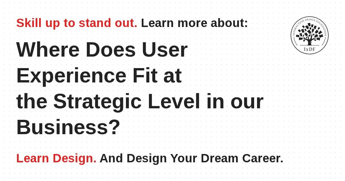 UX can appear a little distant from this big picture because it deals with the details of how design must serve the user. Yet, great UX itself is surely a strategic goal.