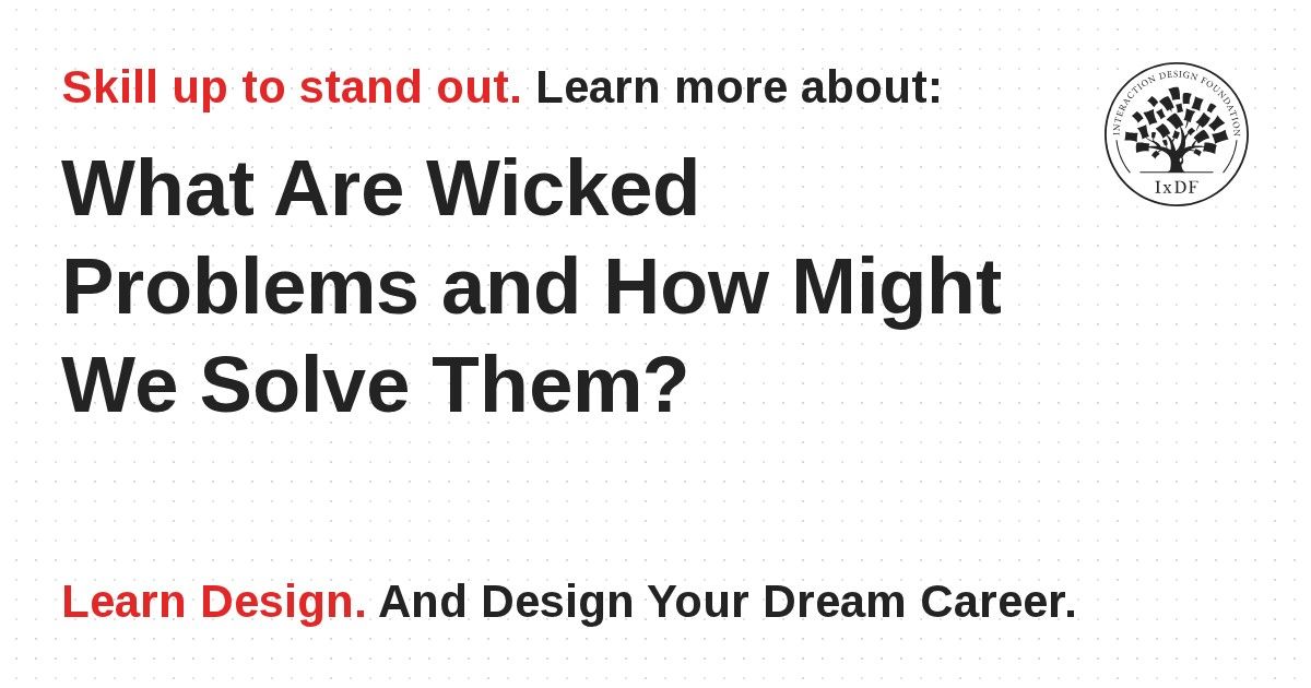 Many of the design problems we face are wicked problems, where clarifying the problem is often as big a task as solving it… or perhaps even bigger. Wicked problems are problems with many interdependent factors making them seem impossible to solve as there is no definitive formula for a wicked problem.