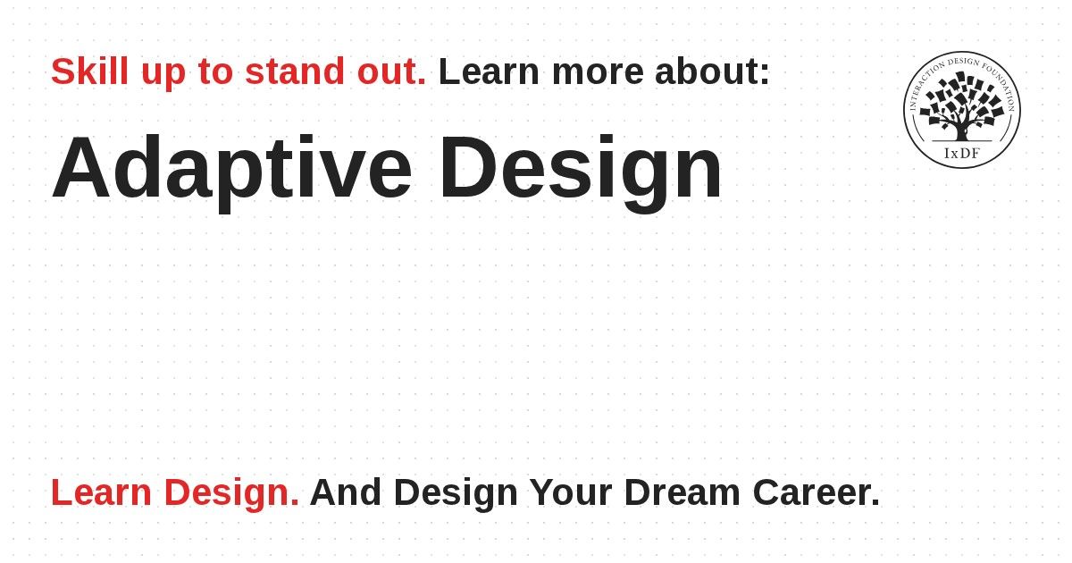 Adaptive design is like responsive design, which also adapts to different screen sizes. However, responsive designs use a single layout that adjusts in response to screen size. Adaptive design content chooses the best configuration from a selection of fixed layouts.