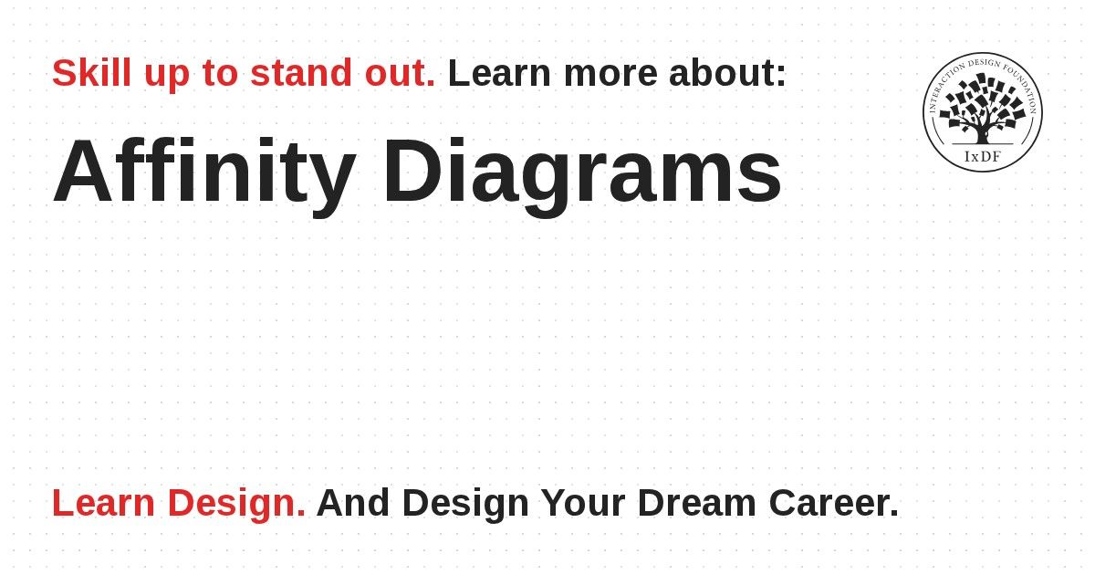 The Oxford English Dictionary defines “affinity” as “a similarity of characteristics suggesting a relationship, especially a resemblance in structure between animals, plants, or languages.” In an affinity diagramming session, participants group similar ideas, items, statements, or data with a “liking” or “similarity” to each other together. You can do this physically with cards or post-it notes or with diagramming and brainstorming software.