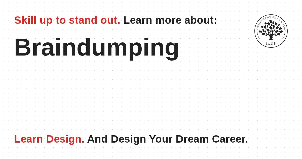 Use braindumping as a recurring tool: Don’t treat it as a one-time only activity. Designers often use it multiple times during a project when new information surfaces or momentum stalls.