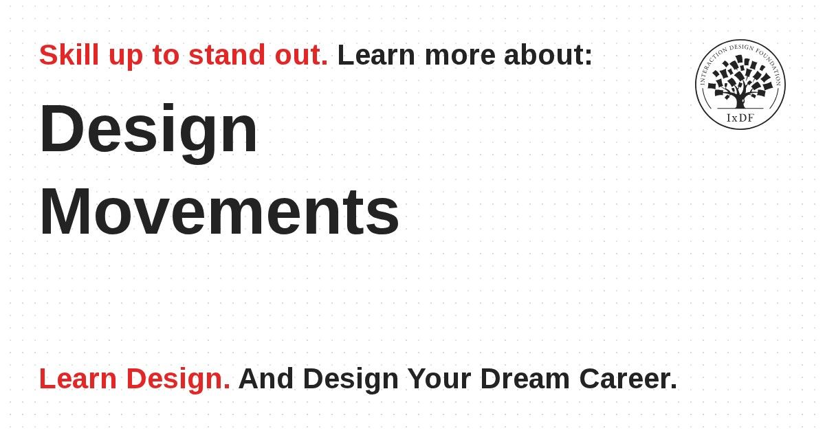 Understanding movements gives you metaphors and references, not just “make it flat” but “make it like De Stijl grid clarity” or “like Arts and Crafts tactility.” That versatility helps you design more memorable and coherent experiences. Knowledge of design movement context can help you avoid treating design as isolated elements and, instead, view interaction, layout, tone, visual style, and even technological affordances as part of a larger culture of design.