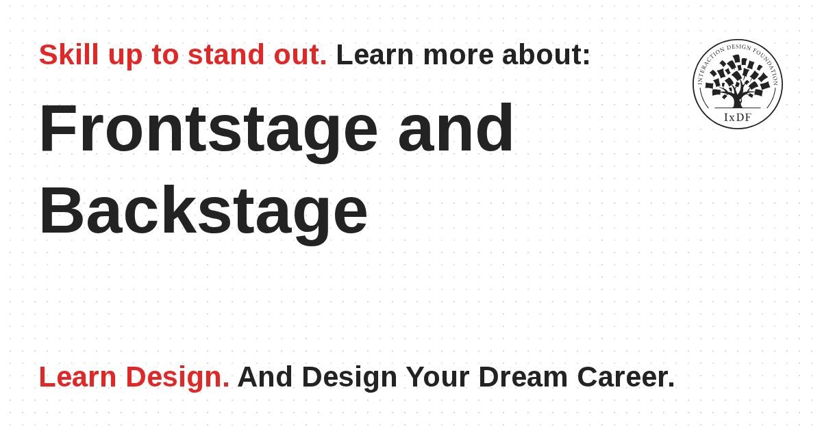 Frontstage and backstage are the areas that border the line of interaction in a customer experience. Customers directly encounter frontstage parts, such as counter staff, but not backstage ones, including back-end staff, systems and other partners. In the best experiences, frontstage and backstage operate in harmony.