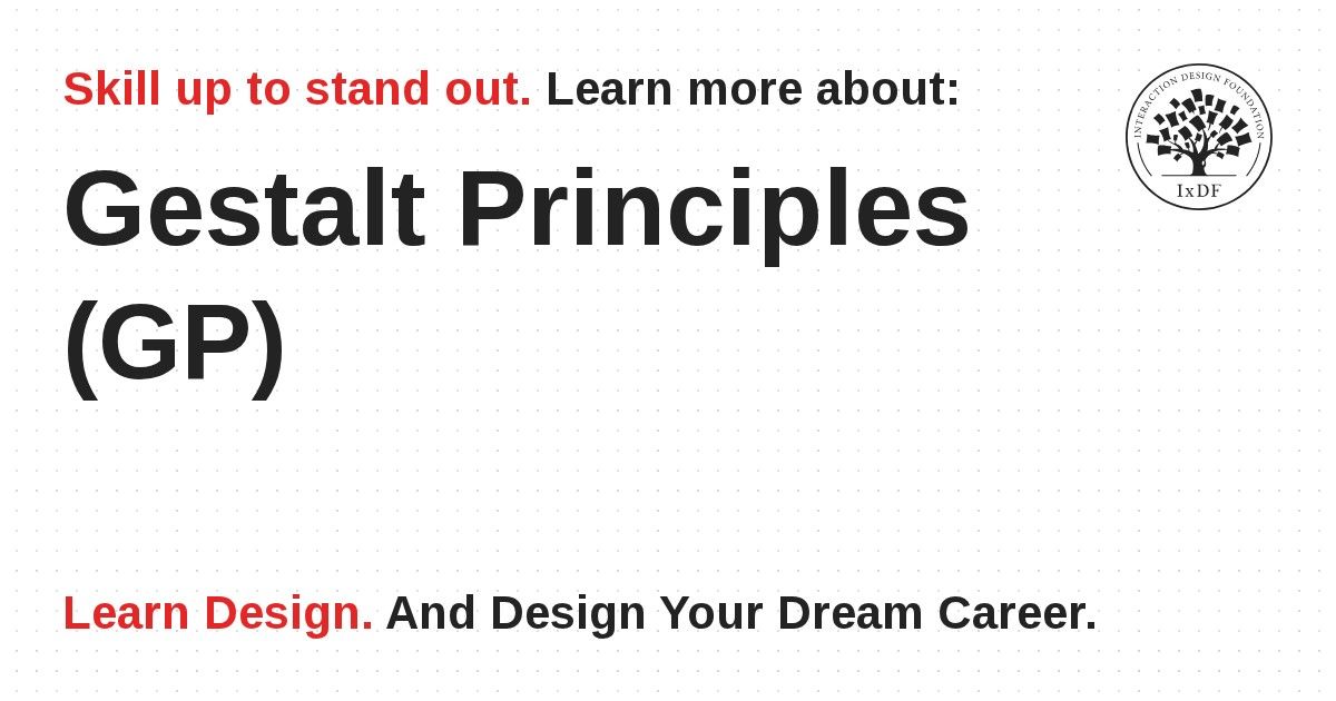The Gestalt Principles are vital in user experience (UX) design. When you design interfaces, users must be able to understand what they see—and find what they want—at a glance. Below are examples of the Gestalt principles from the IxDF landing page.